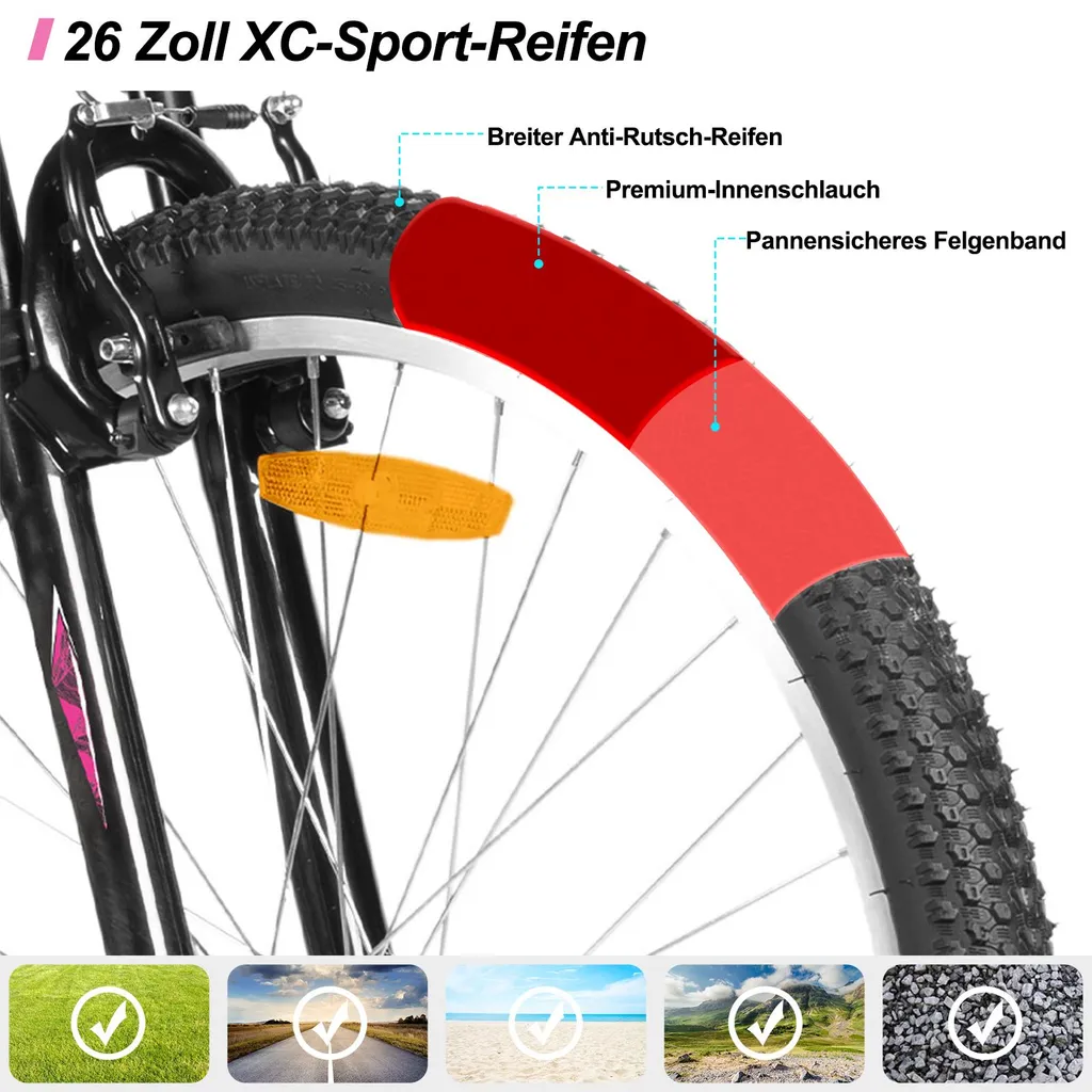 Perfekt für Gelände & Stadt: Ob auf Waldwegen, Schotterpisten oder in der Stadt – das Hiland Damen-Mountainbike ist ein vielseitiger Begleiter für Abenteuer und den Alltag.