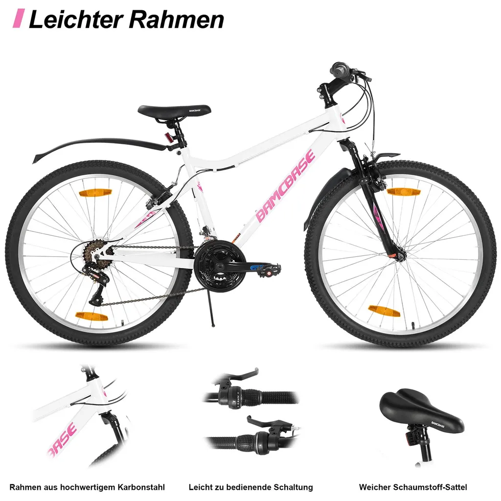 Hiland 26 Zoll Damen Mountainbike, 18-Gang Schaltung, Mountainbike mit V-Bremsen, Robustes MTB für Frauen Studenten-Pendlerfahrrad, Weiß
