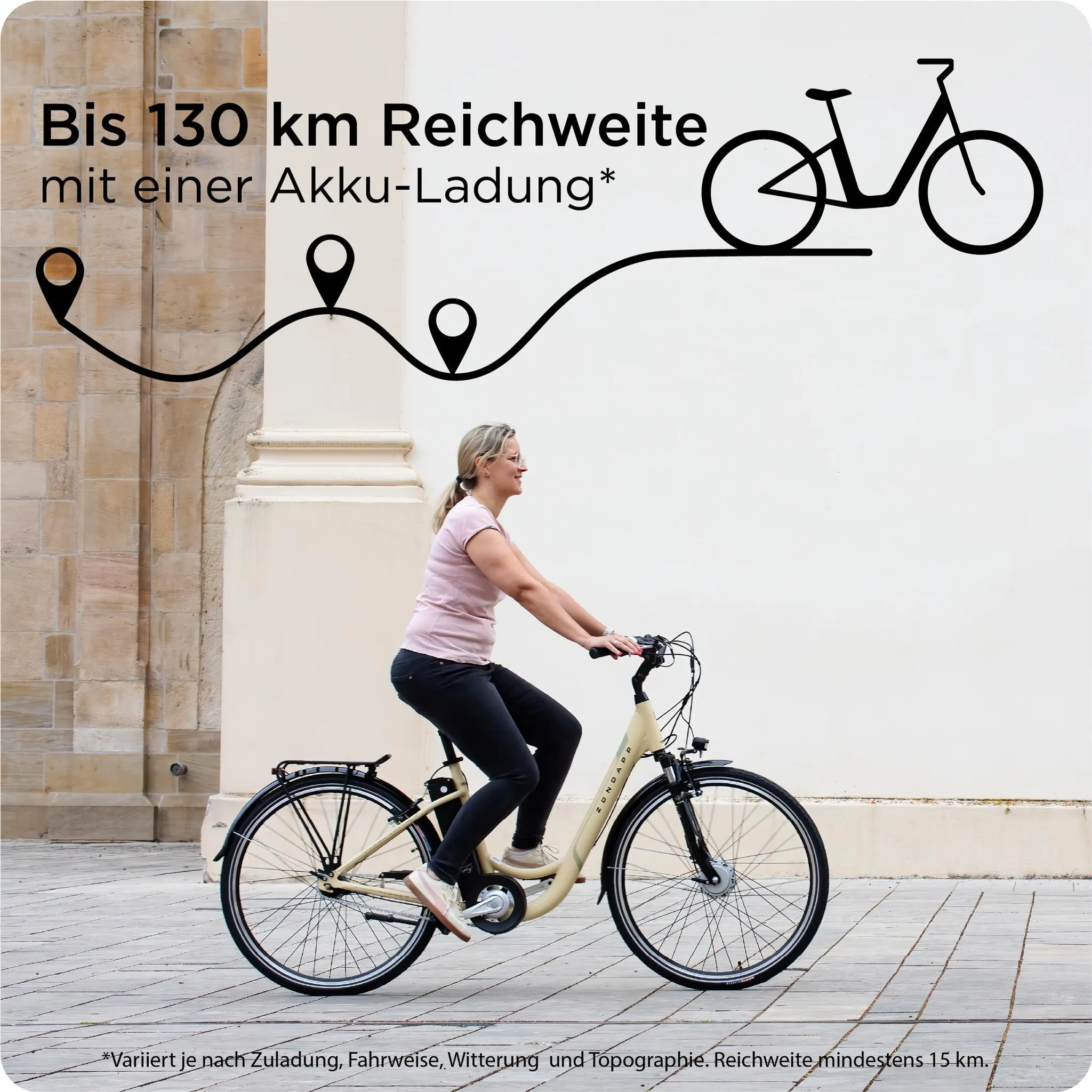 | Reichweite: | 15 – 130 km je nach Fahrweise und Zuladung |