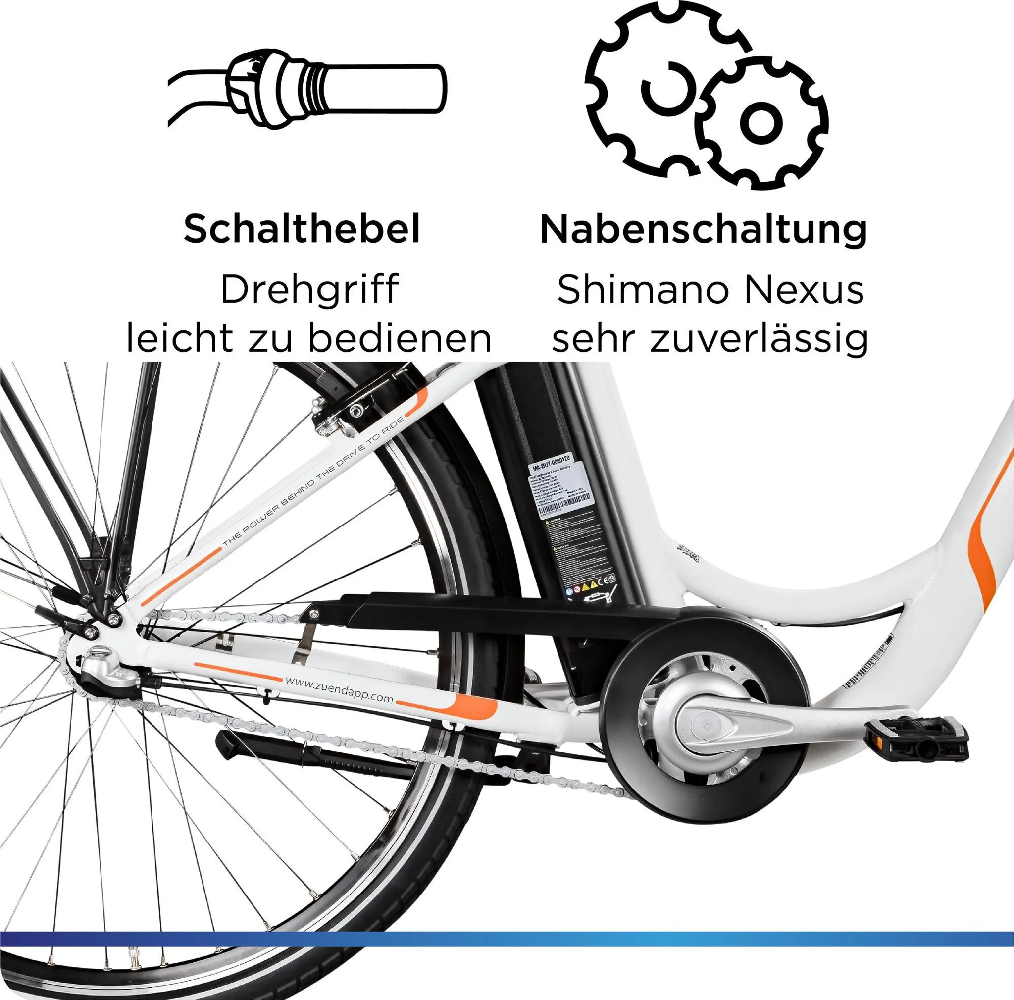 Zündapp Z510 E Bike 28 Zoll Damenfahrrad ab 155 cm mit 3 Gang Nabenschaltung und Rücktrittbremse weiß/orange